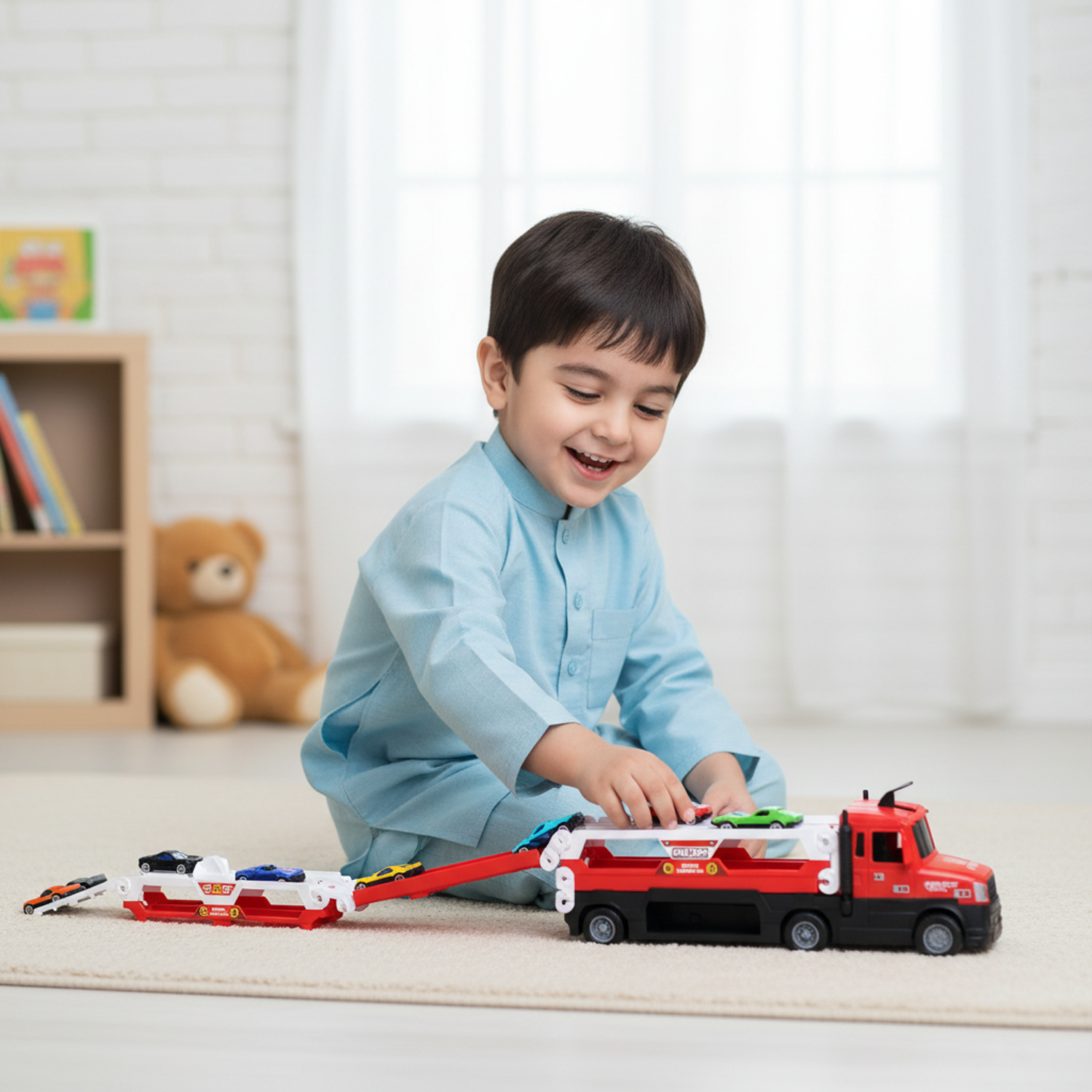 Racing Track Truck is an exciting 2-in-1 playset that transforms from a large car carrier truck into a racing track and parking station. Designed for kids who love cars and action-packed play, this toy combines racing fun with smart storage in one complete set.