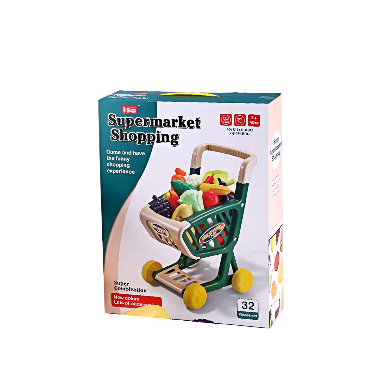 Accessories Included: Multiple grocery items (approx. 32 pieces)
