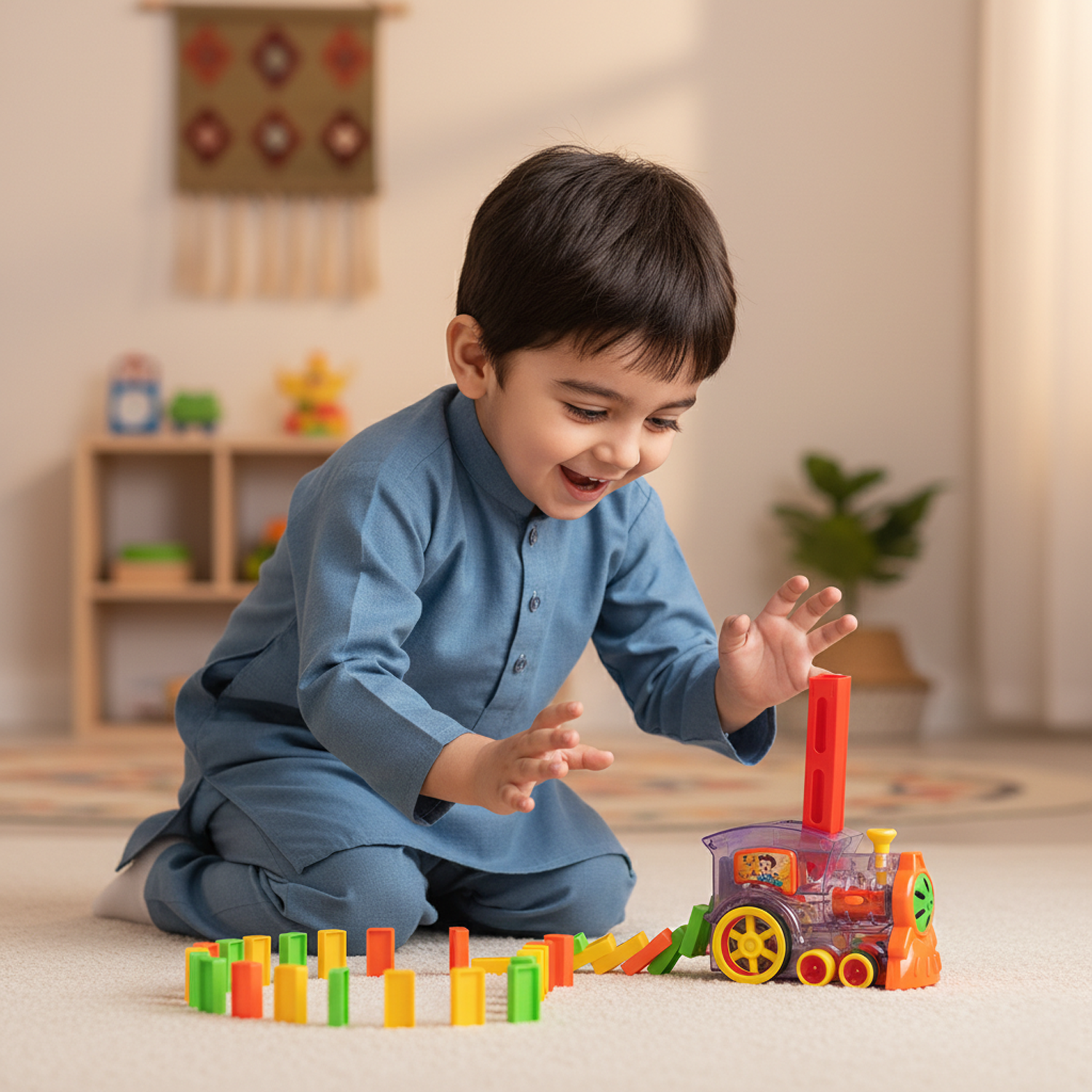 Bring excitement and creativity to playtime with the Domino Train Set – a fun and interactive toy that automatically lays dominoes as it moves. Designed to spark imagination and hands-on learning, this colorful train makes building domino tracks effortless and exciting for kids.