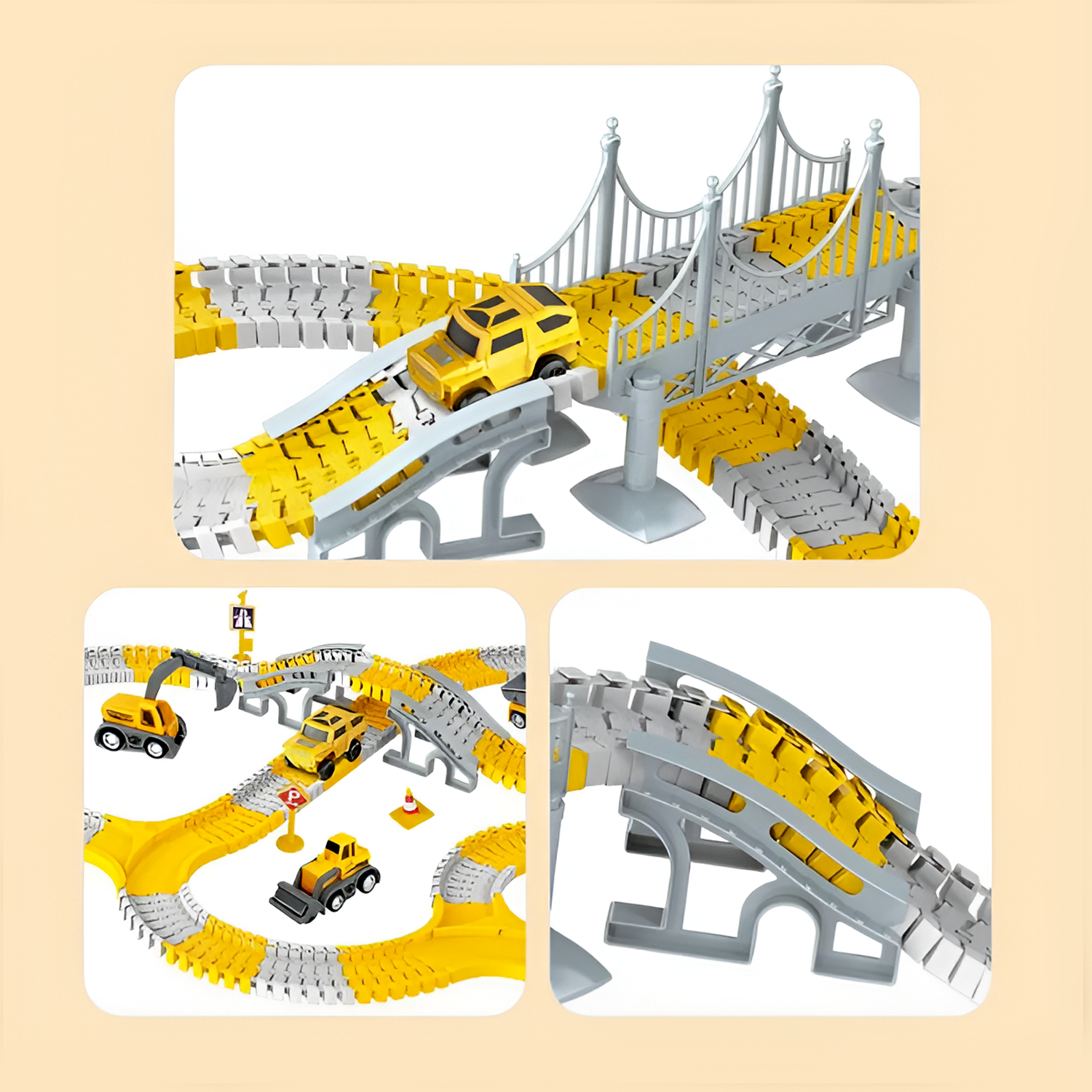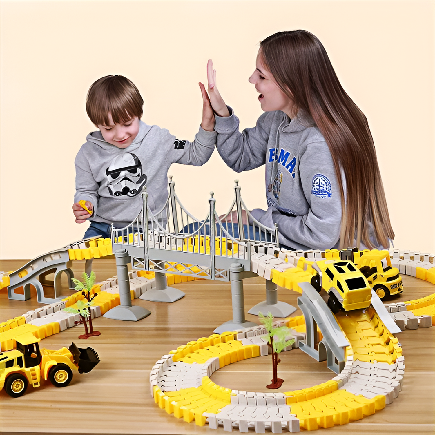 Kids can assemble different track layouts, guide vehicles across bridges, and create dynamic construction scenes using the included accessories. This hands-on play encourages imagination, problem-solving, and coordination while keeping children actively engaged.