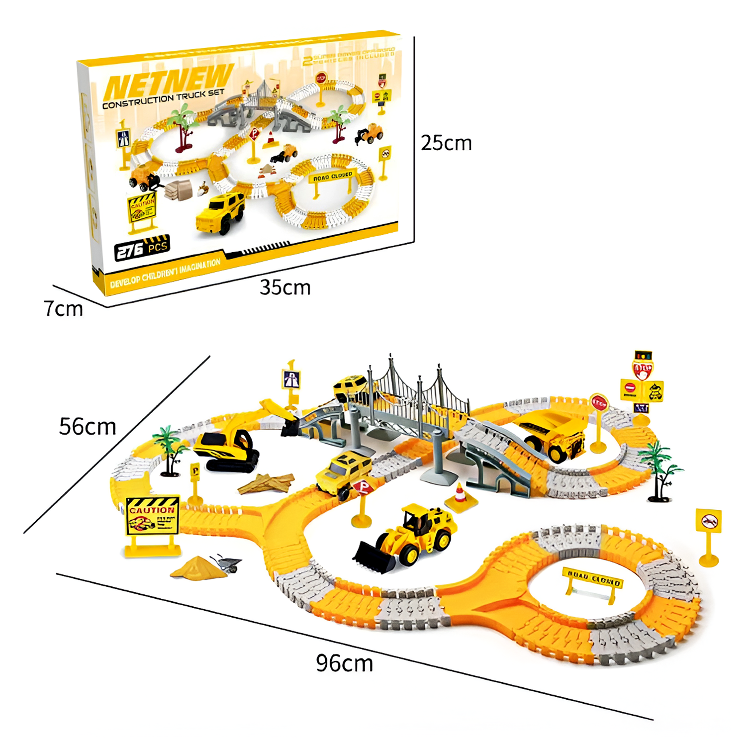 The Net New Construction Track is an exciting construction-themed playset that lets children build their own roadways and construction sites. Featuring flexible track pieces, bridges, ramps, and realistic construction vehicles, this set delivers an immersive pretend-play experience inspired by real construction work.