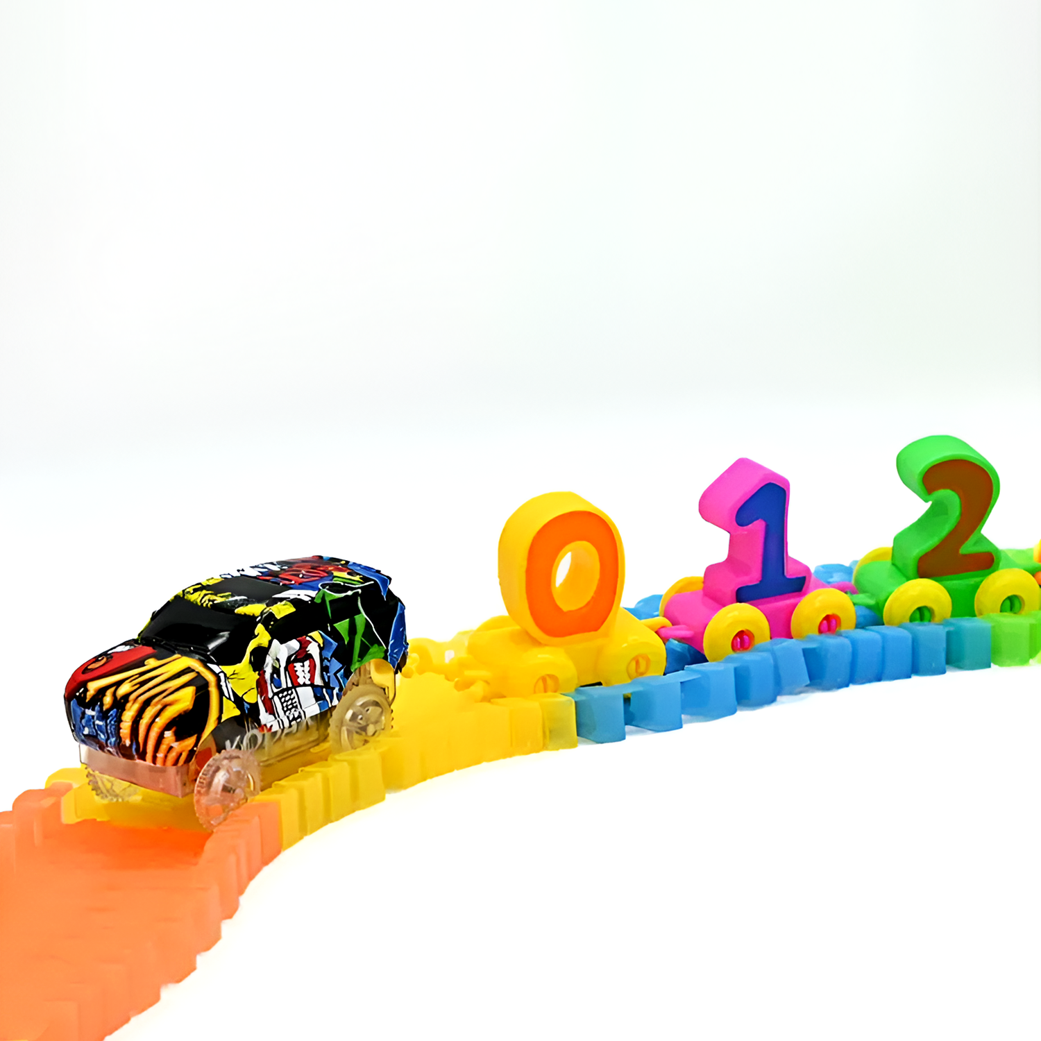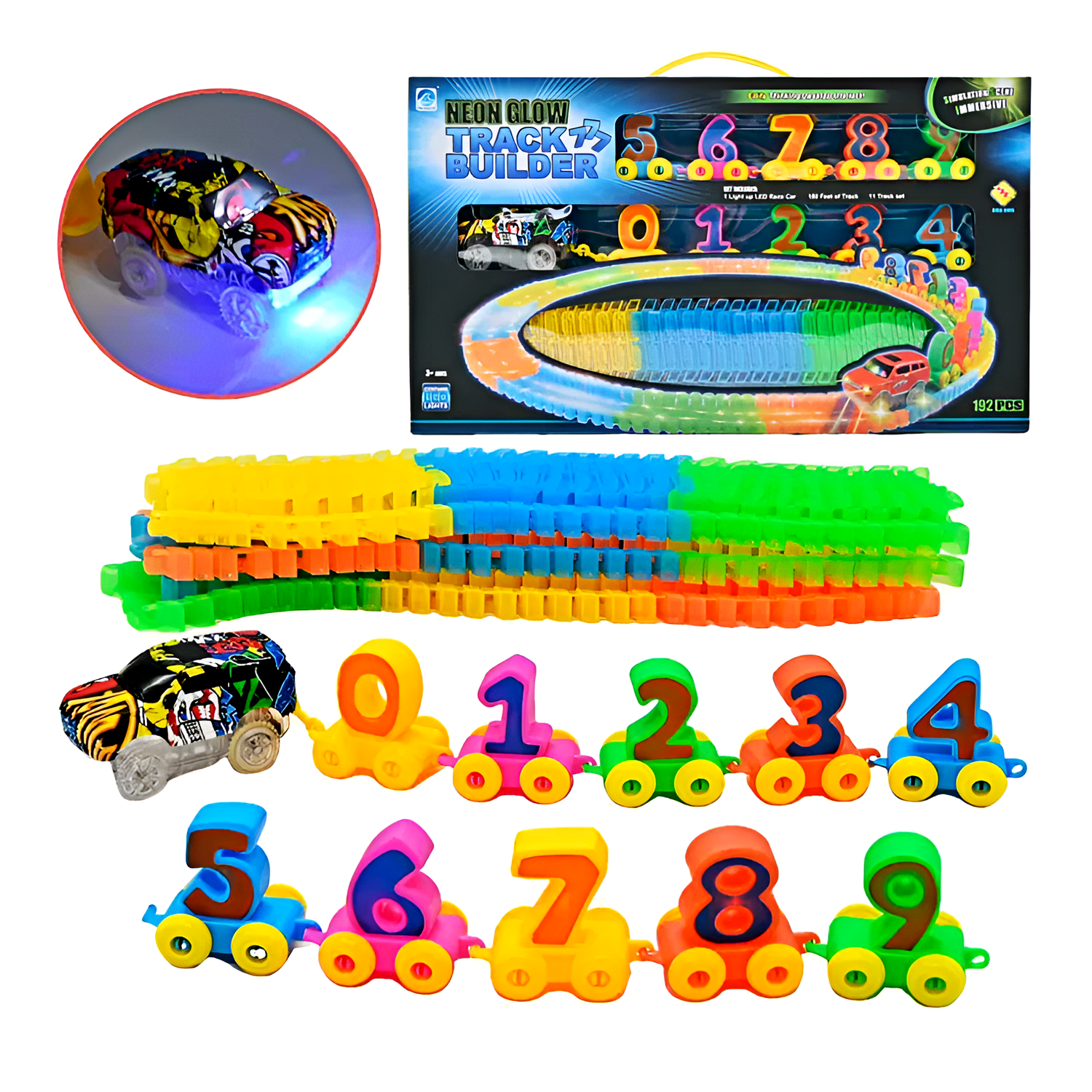 The Neon Glow Track is an exciting light-up racing set designed to deliver fast-paced fun and creative play. Featuring colorful flexible track pieces and a glowing LED car, kids can build endless track shapes and watch the car race through bright neon paths.